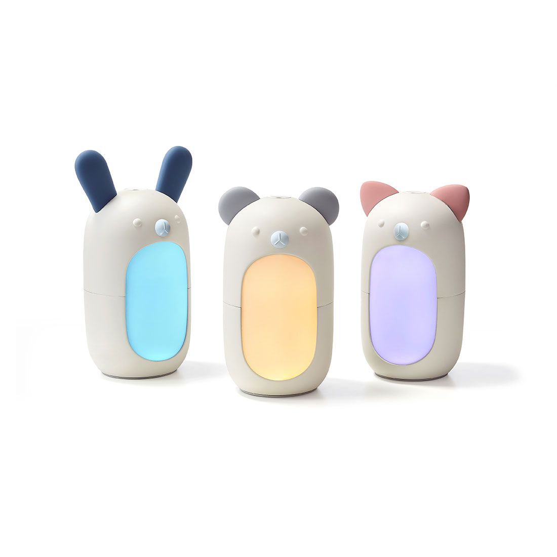 Eine integrierte Zeitschaltuhr erlaubt die Programmierung von 3 Beduftungszeiten: 2 Stunden und 4 Stunden im Dauerbetrieb oder 8 Stunden im Intervallmodus sind möglich. Zudem kann zwischen 3 Einzel-Beleuchtungsfarben (Pastell-Blau, -Gelb, -Lila) oder automatischer Farbwechslerfunktion gewählt werden. Auch als Nachtlicht macht der Vernebler Funny Friends ebenfalls eine gute Figur.