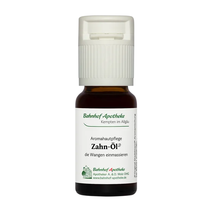Das Zahnöl der Bahnhof-Apotheke Kempten ist ein aromatisches Pflegeöl, das speziell für die Bedürfnisse zahnender Babys und Kleinkinder entwickelt wurde. Mit seiner intensiven krautigen und würzigen Duftnote eignet es sich ideal zur unterstützenden Pflege in dieser besonderen Entwicklungsphase.